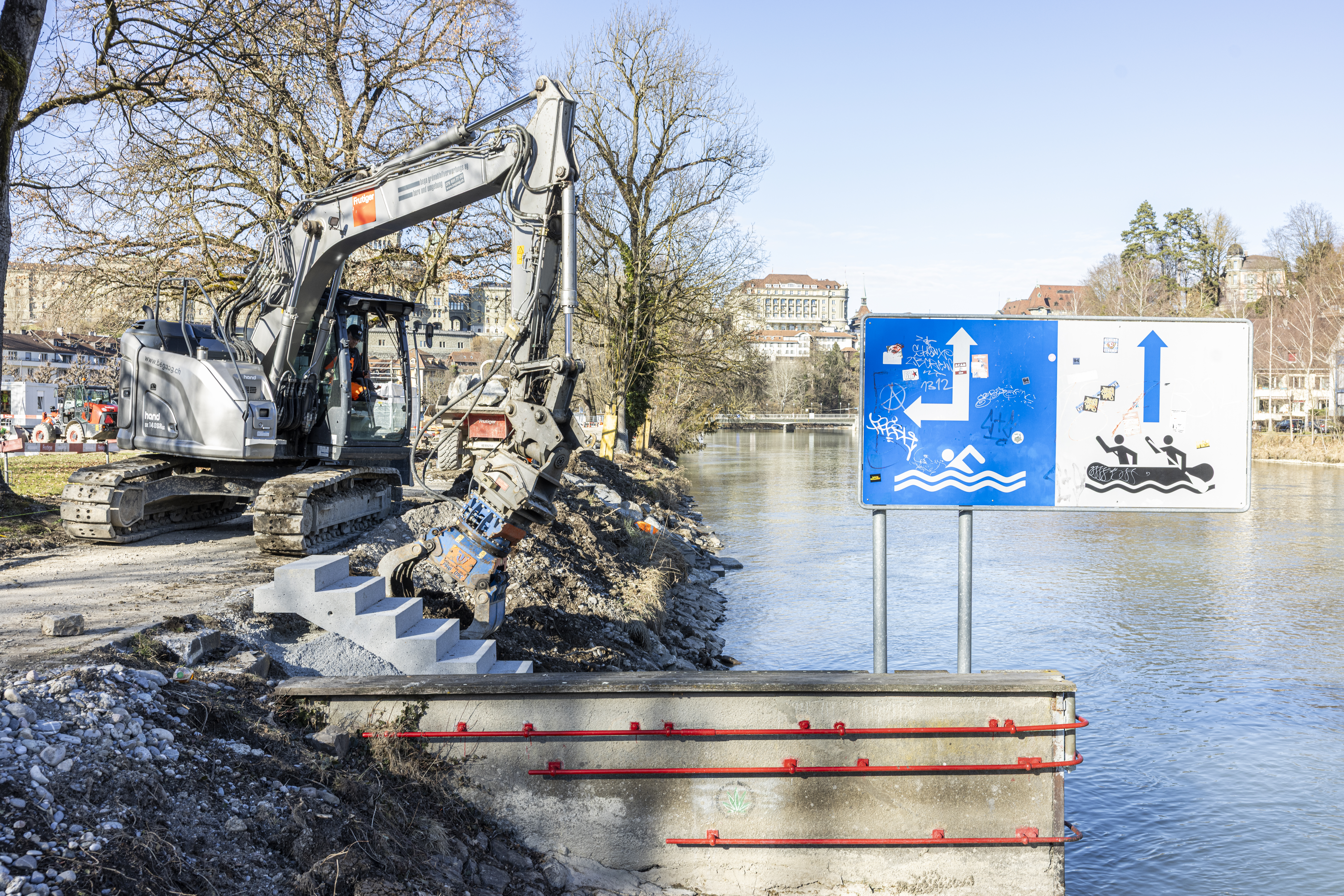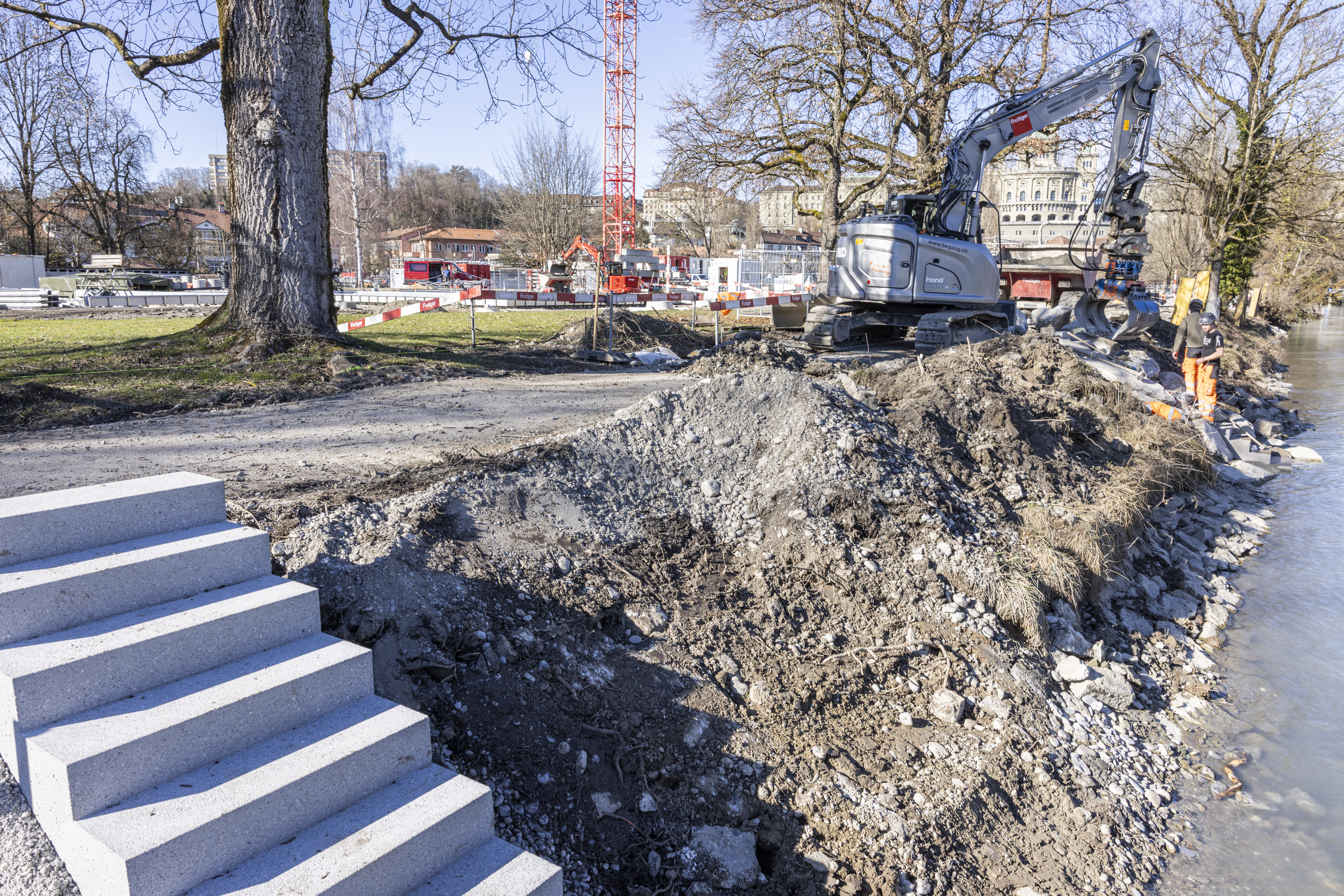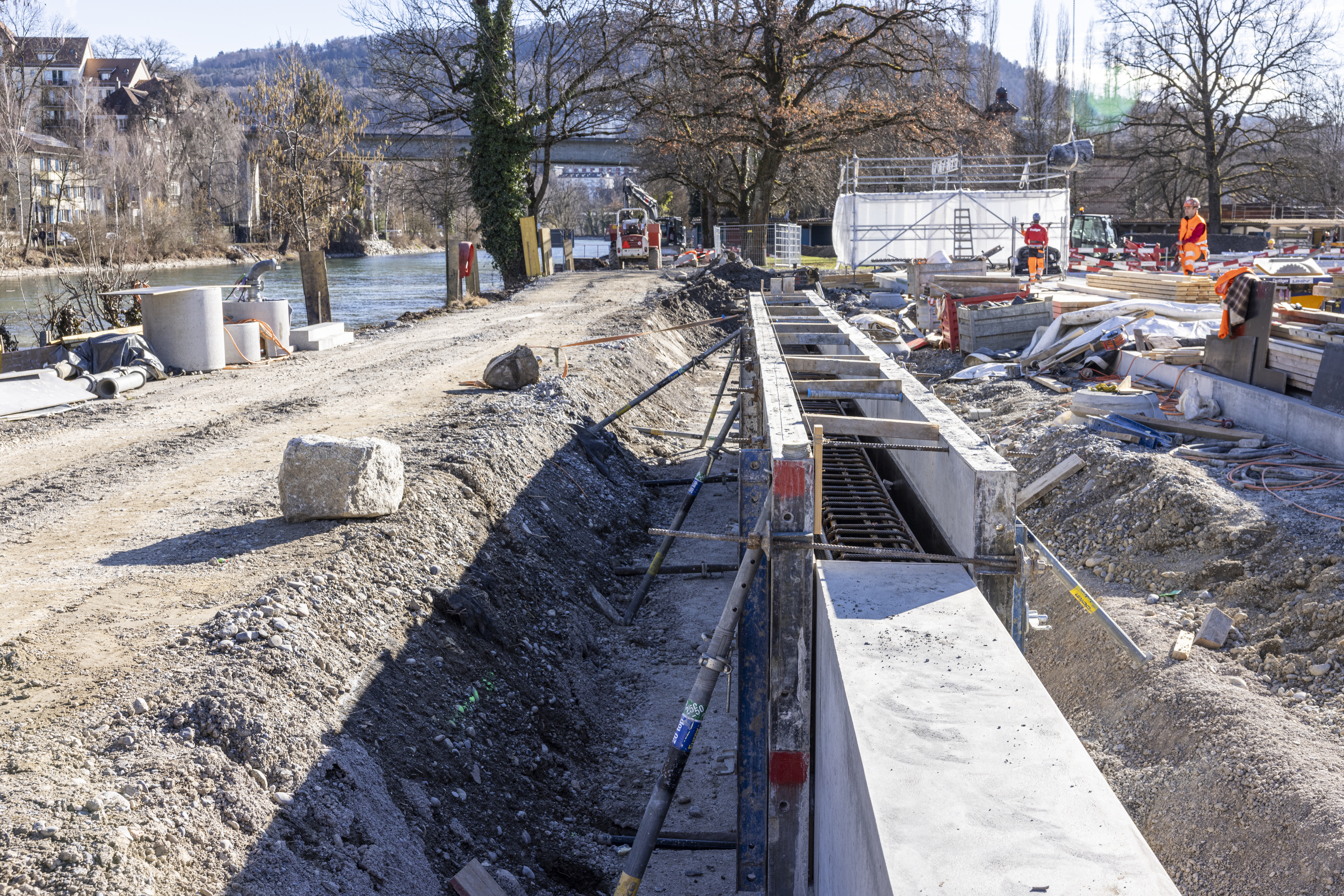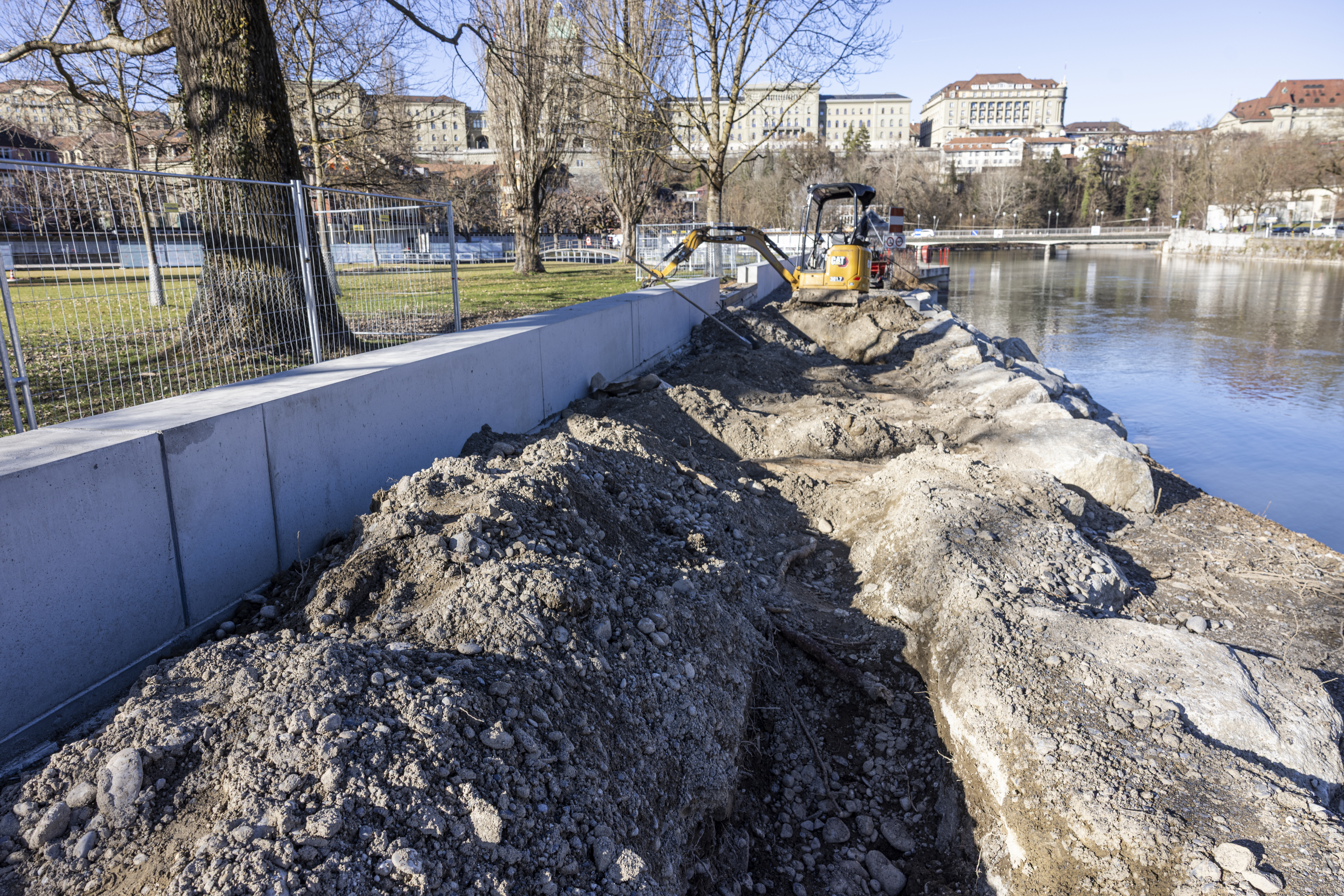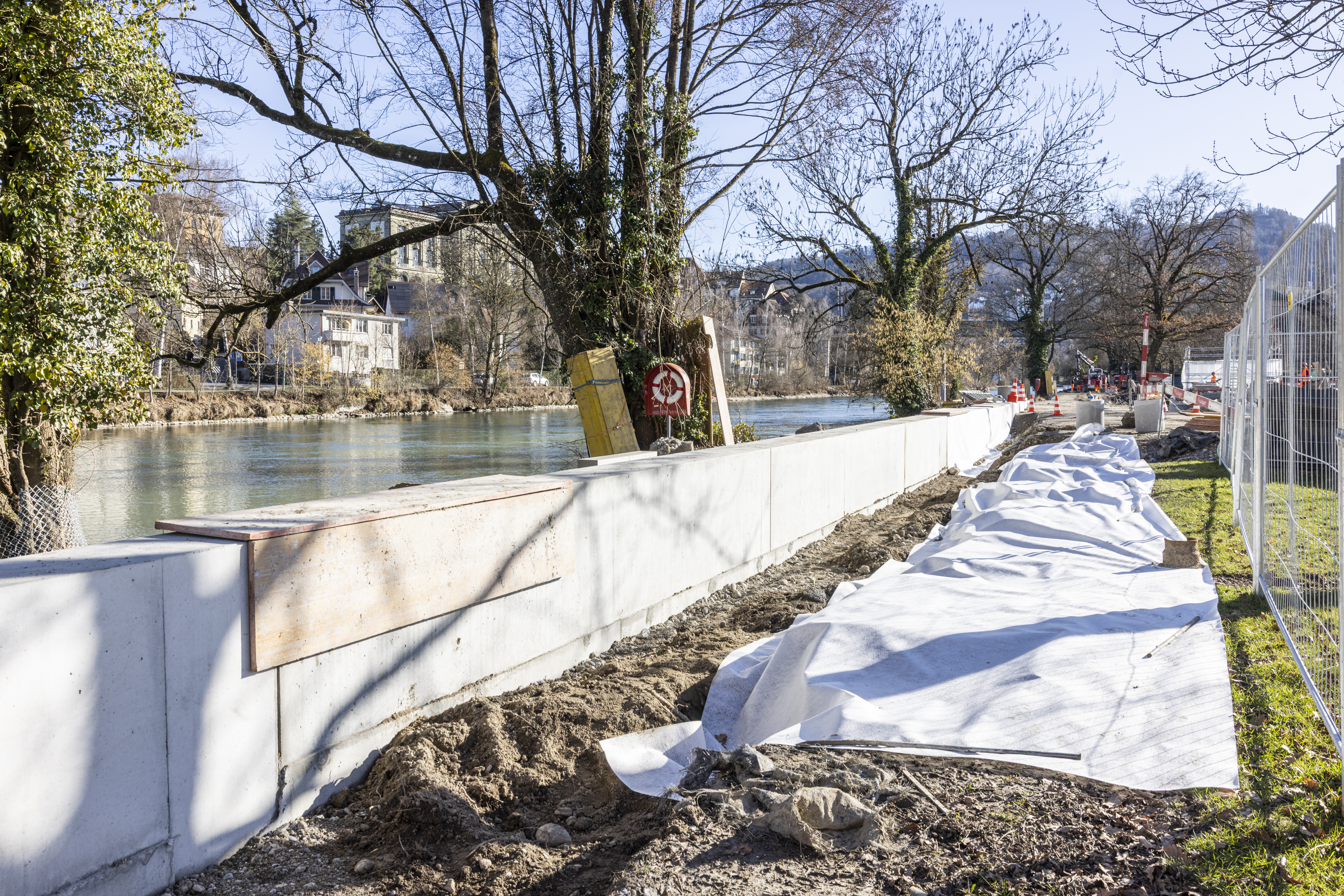 Hochwasserschutzarbeiten entlang des Freibads Marzili – Februar 2026