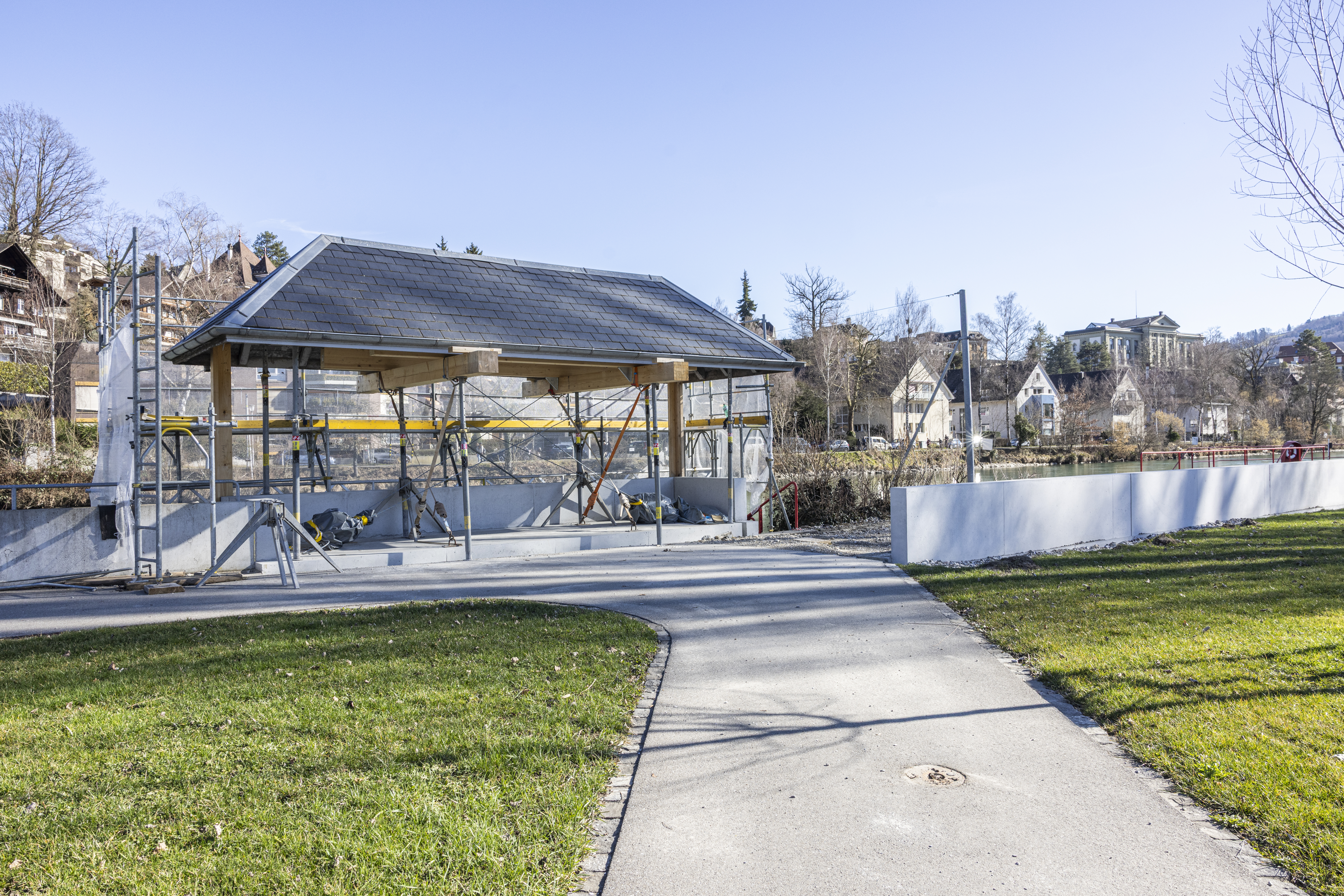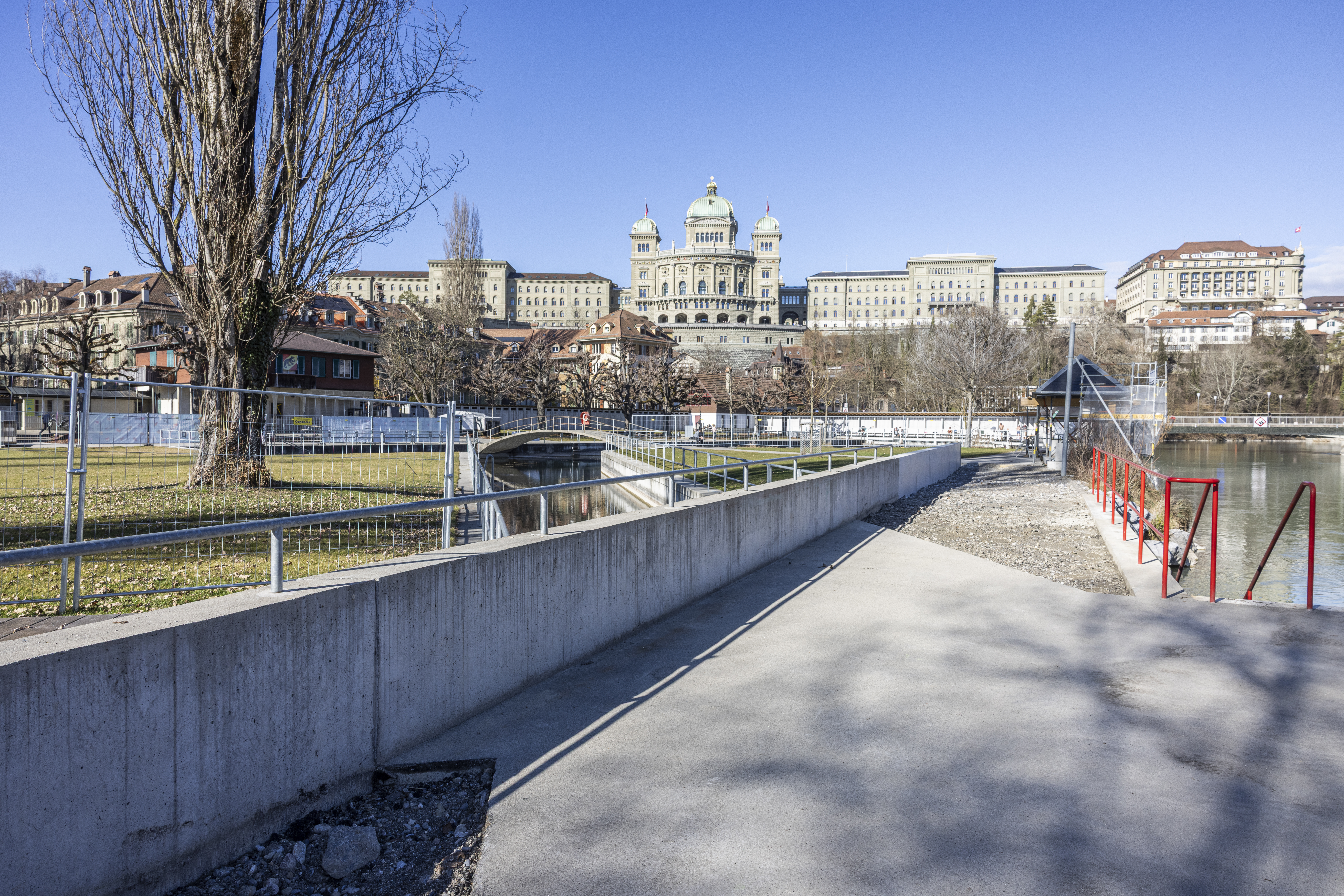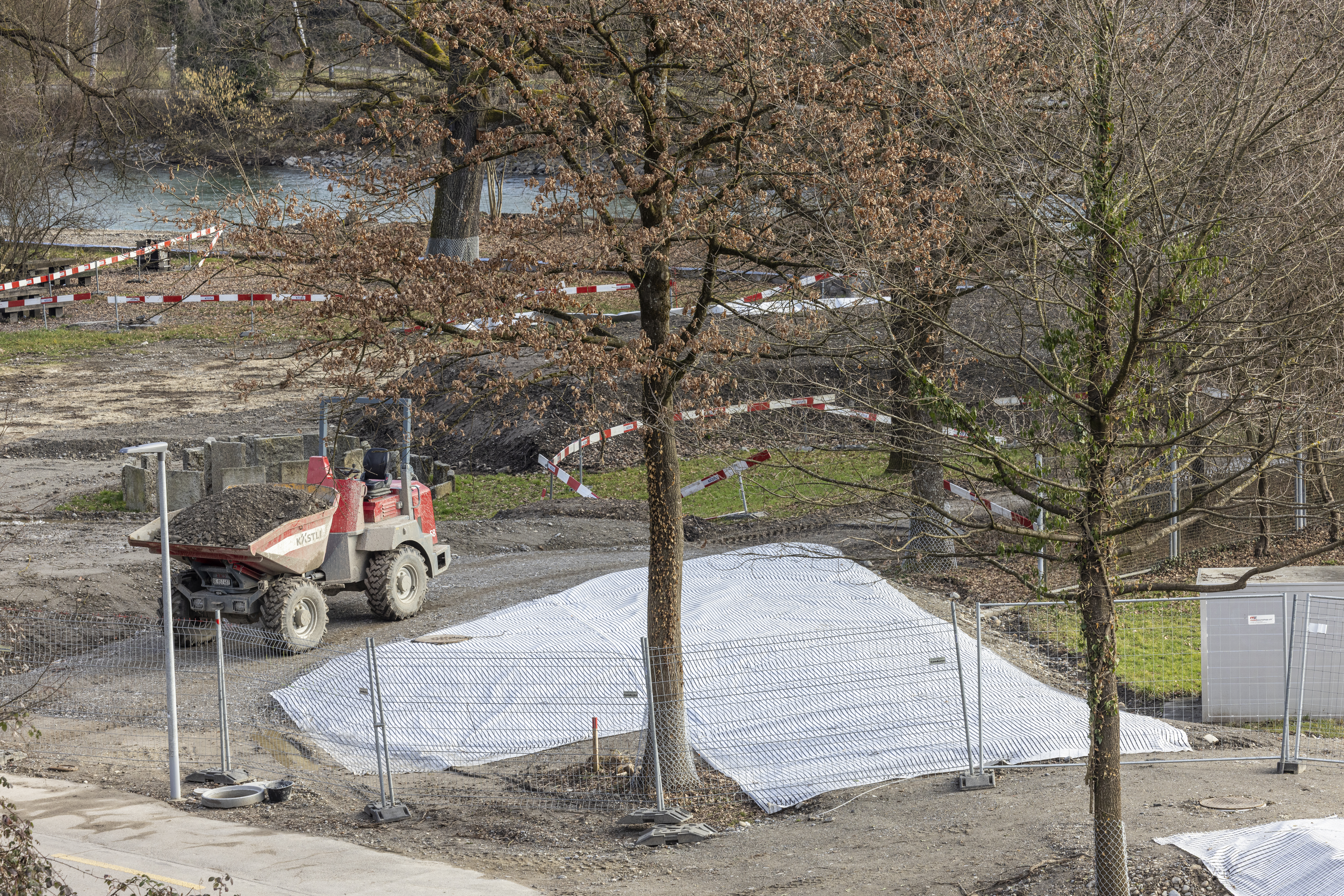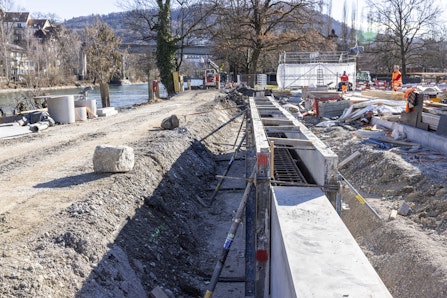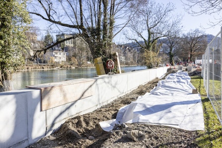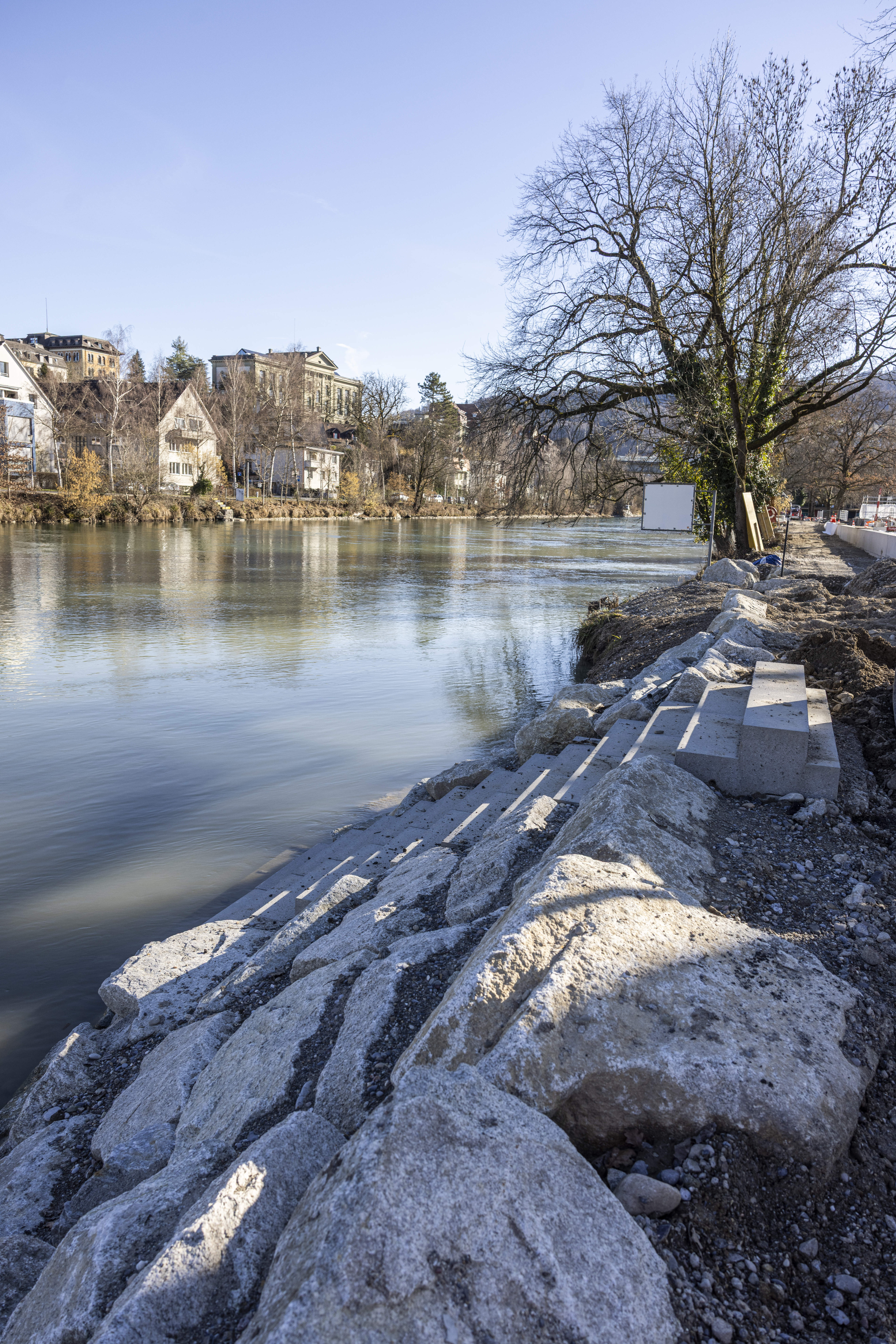 Hochwasserschutzarbeiten entlang des Freibads Marzili – Februar 2026